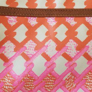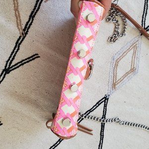Cute small croosbody bag with eclectic tribal print and chain/leather strap. This is in great condition and is almost like- new except for a little very light stain on the interior (I have cleaned it, and it's not very noticeable unless you look for it, but it is there). This goes with soany outfits and can be used for a cute every day compliment to an outfit or can dress up a great dress!