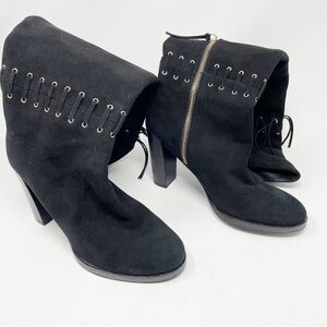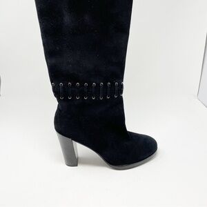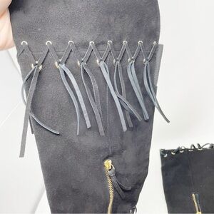 Rebecca Minkoff Black Bardot OTK Lace Fringe Heel Boots 8.5