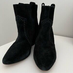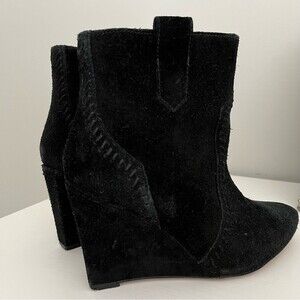 Rebecca Minkoff Black Bianca Suede Wedge Booties, Size 6.5