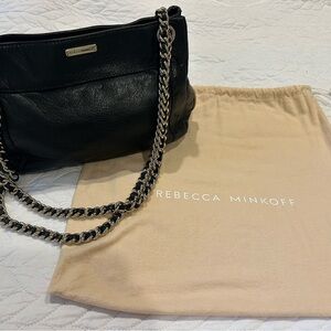 Stylish black shoulder bag with a bold chain strap. Perfect for versatile wear.