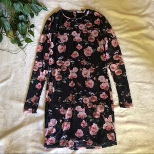 NWT. Lined. A floral print mesh type overlay makes this mini dress cute but edgy. Bodycon fit.