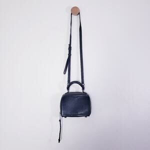Pre-Owned Rebecca Minkoff Box Crossbody Bag in Excellent Used Condition (EUC) with No Flaws. This designer bag features genuine black leather that is embossed with a stylish snakeskin print texture.