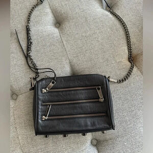 Rebecca Minkoff crossbody bag, black leather designer purse, genuine leather shoulder bag, gunmetal chain strap bag, moto style handbag, edgy street style bag, minimalist leather crossbody, Rebecca Minkoff Moto crossbody, women’s black leather purse, Rebecca Minkoff black bag, chain strap leather purse, chic everyday crossbody, urban fashion handbag, small crossbody bag leather