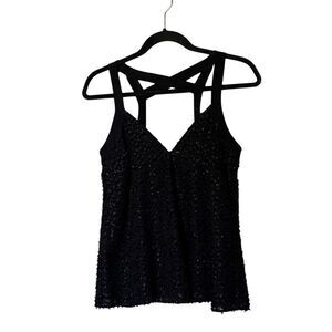 Rebecca Minkoff Black Metallic Textured Strappy Flowy Cami/Tank Top Size Small