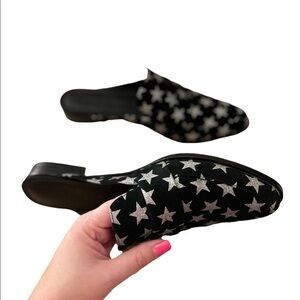 Rebecca Minkoff Black Mika In Galaxy Print Mules/Slides