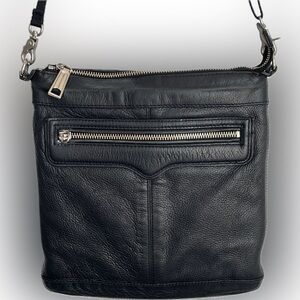 Rebecca Minkoff Black Pebbled Leather Crossbody Slim Messenger Bag