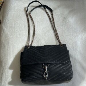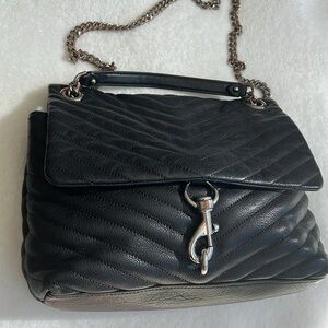 Rebecca Minkoff Black Quilted Pebbled Leather Edie Crossbody Shoulder Bag