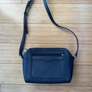 Rebecca Minkoff Black Square Crossbody Bag. Perfect sized small crossbody or shoulder bag - holds a deceivingly large amount of things! Well loved but still in great condition, plenty of life left. Small spill of clear nail polish has hardened in the bottom of the bag, pictured here.