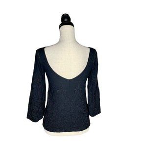 Rebecca Minkoff Black V-Neck Embroidered Wool Blend Blouse Women's Size S