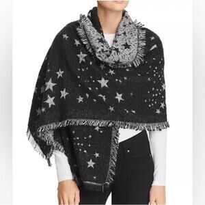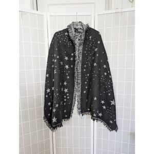 Rebecca Minkoff Black and Metallic Silver Star Blanket Scarf Shawl