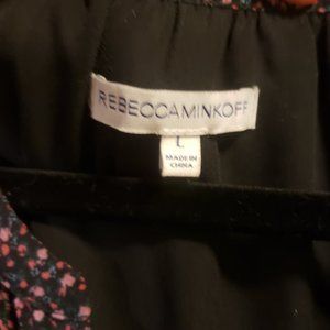 Elegant midi dress with ruffle sleeves. Features a delicate pink pattern on a black background. Perfect for any occasion.
