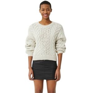 Rebecca Minkoff Blake Pearl Embellished Cable Knit Sweater in Cream Size Medium
