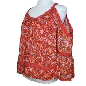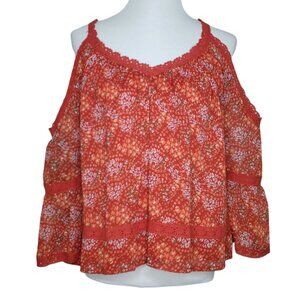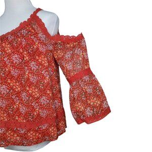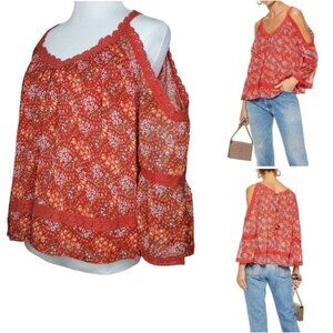 Rebecca Minkoff Blouse Size XS Boho Floral Flowy Cold Shoulder Deneuve Orange