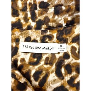 Rebecca Minkoff Blouse Womens 1X Brown Leopard Print Button Up Long Sleeve Top