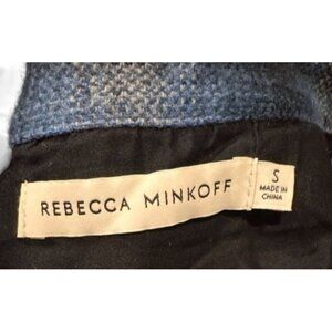 Rebecca Minkoff Blue Plaid Button-Up Shirt Mandarin Collar & Pleated Sleeves