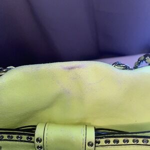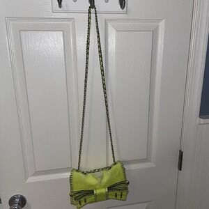Rebecca Minkoff Bow Studded Shoulder Crossbody Bag Purse Neon Yellow Chain Strap