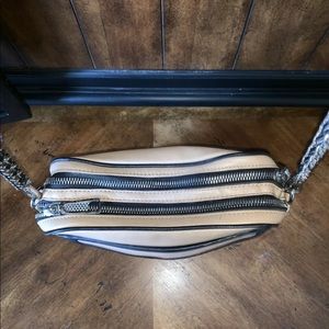 This Revecca Minkoff Crossbody Bag is the perfect day/evening bag. The bag’s black trim detailing adds make this bag a standout from the moment you see it!