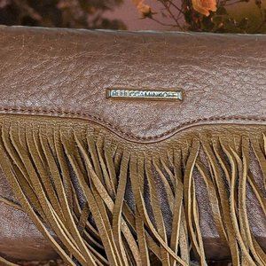 Rebecca Minkoff Brown Vegan Leather Fringe Mini Crossbody Purse Wallet