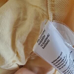 In ultra-trendy buttermilk yellow, these comfy cotton jeans by Rebecca Minkoff offer a twist on traditional denim. High rise. Cropped length. Slim leg.