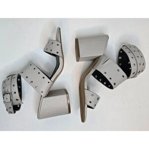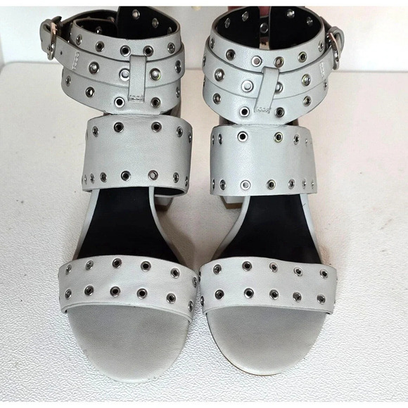 Rebecca Minkoff CARTER Heeled Studded EYELET Sandals Leather Gray Size 6 M