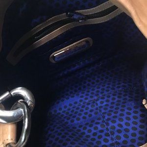 Beautiful soft buttery leather bag with gunmetal color hardware. Clean inside. Only used a few times as its edgy style doesn't quite work with my clothes. Still love it though! Hope it can find a new owner who can make better use of it. Width: 15.5 inches, Height: 14.5 inches (without handle), Depth: about 2 inches.