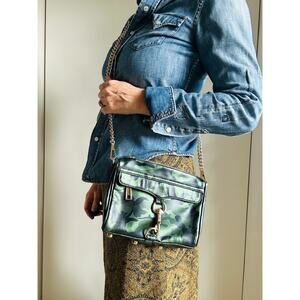 Rebecca Minkoff Camouflage Leather Handbag Crossbody to clutch Green Gold Chain Strap