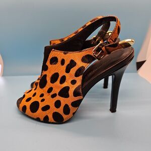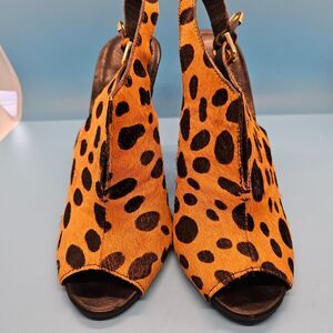 Rebecca Minkoff Cheetah Calf Hair Peep Toe Slingback Stiletto Heels SEXY Sz 6M