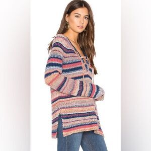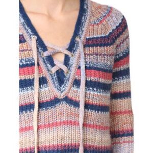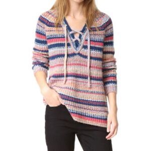 Pullover v neck styling with lace up tie at neck in Multi Space Dye Stripe. Oversized fit intended.