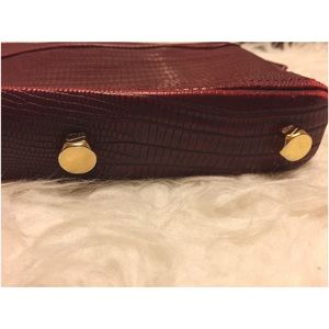cute, roomy clutch • beautiful maroon color • gold hardware: zipper and 5 big studs on the bottom • 15" wide x 7" tall • pre-owned & in good condition