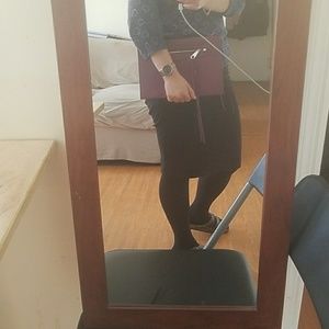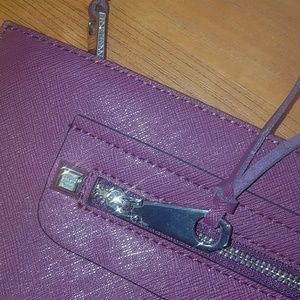 Purple, textured leather clutch. Two zipper pockets, silver hardware. New condition. Approx 11"x8"