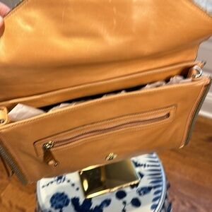 Absolutely gorgeous peach and grey handbag. Can be worn several different ways, clutch, handbag, or shoulder bag.. Magnetic closure