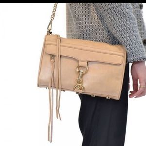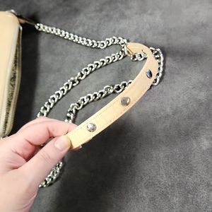 Stylish cream crossbody bag. Features silver hardware. Includes adjustable strap and chain detail.