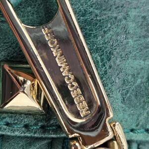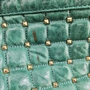Rebecca Minkoff Crossbody Satchel Jade Green Leather Gold Tone Studs Hardware