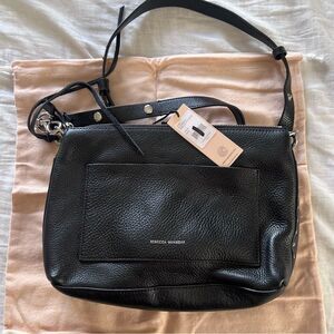 Rebecca Minkoff Darren Top Zip Leather Shoulder Bag Black NEW MSRP $328