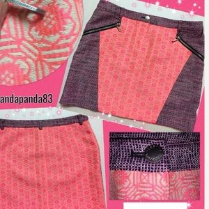 NWOT! Rebecca Minkoff Daryl Tweed skirt. There are shimmer threads that add a sparkle to the bright coral color of the front half and the entire back. Silver button w/ logo imprinted, 2 slanted zip pockets w/ logo on sides of zipper and a gold logo plaque on the inside. NO LONGER AVAILABLE IN STORES OR ONLINE! GRAB IT WHILE YOU CAN! Size 12.