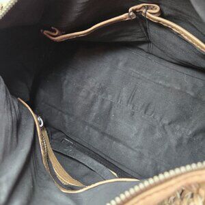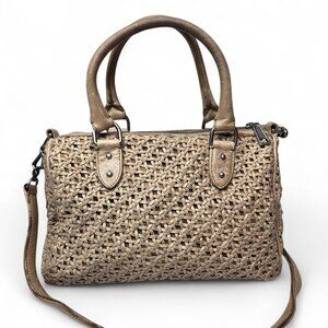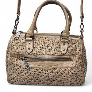 Rebecca Minkoff Distressed Woven Leather Satchel Women's Purse Shoulder Strap.