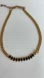 This stunning gold necklace features elegant black accents, perfect for adding a touch of sophistication to any outfit.