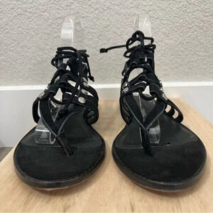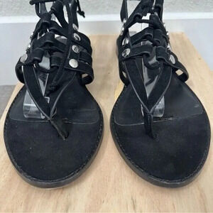 Rebecca Minkoff Evonne Black Suede Strappy Thong Sandals 7
