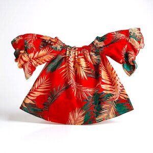 Rebecca Minkoff Faith Off Shoulder Tropical Palm Print Blouse Red Green Size XS