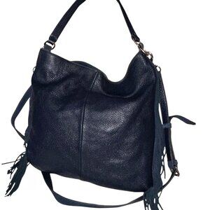 Navy crossbody, leather, fringe, boho bag. Great condition and fall staple!