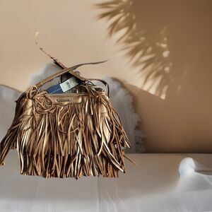 Rebecca Minkoff Finn Cross body ,Clutch rose gold Fringe NWT