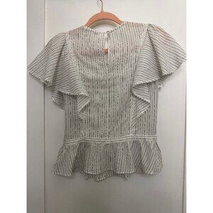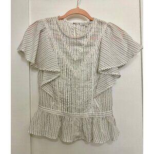 Rebecca Minkoff Flutter Sleeve White Striped and Pleated Boho Top, Size 4