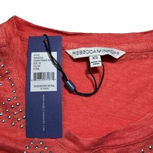 Rebecca Minkoff Gemini Fringe Beaded Linen Top Orange Women's XS NWT