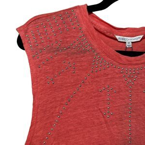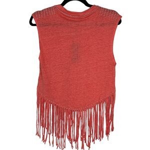 Rebecca Minkoff Women's Gemini Fringe Beaded Coral Linen Orange Top NWT