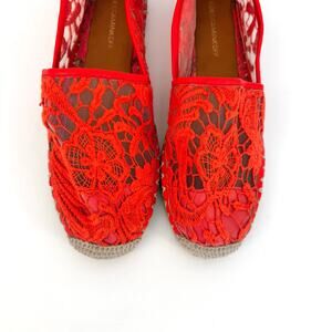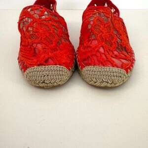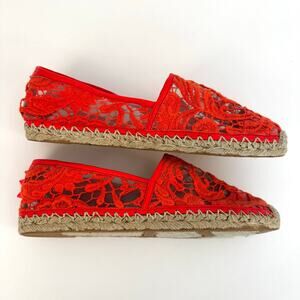 Rebecca Minkoff Genny Lace Mesh Espadrille Slip-On Slats Shoes Red Hot Spike 9.5