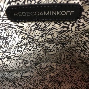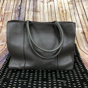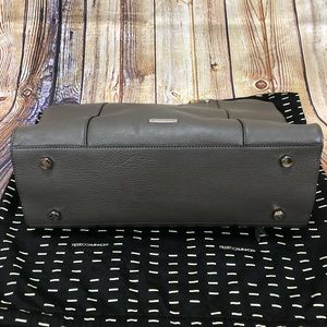 Gray Rebecca Minkoff tote with one exterior zip pocket, one interior zip pocket, and two interior open pockets. Bag close with magnetic clasp.
