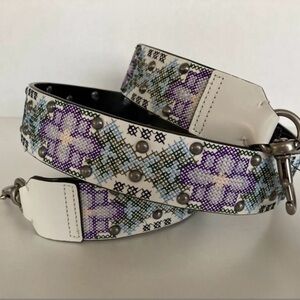 Rebecca Minkoff Handbag Suitar Shoulder Leather Strap Crosshatch White Bianco Multi