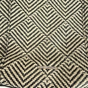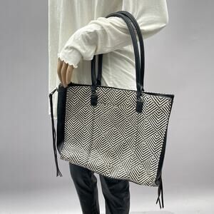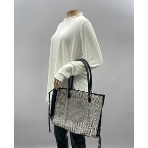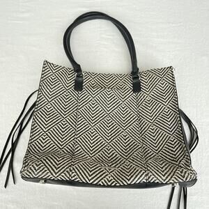 Rebecca Minkoff Handbag Tote Black Leather Straw Geometric Side Zipped Fringe