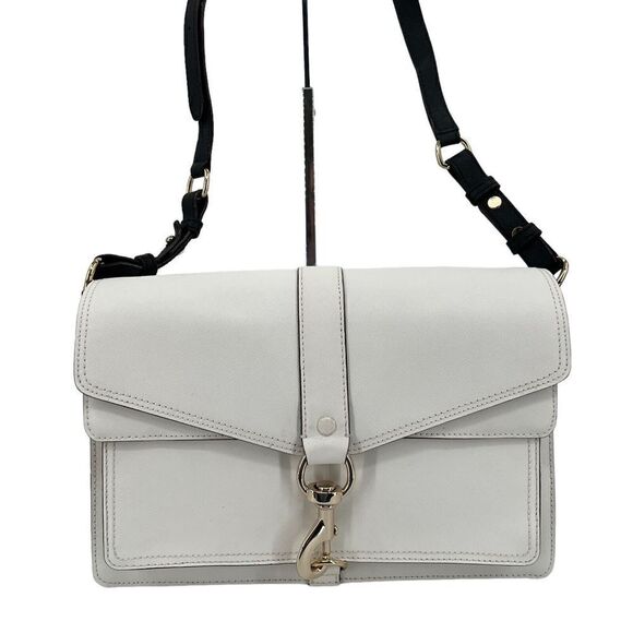 Rebecca Minkoff Handbag Bag Crossbody Hudson White Black Saffiano Leather Flap