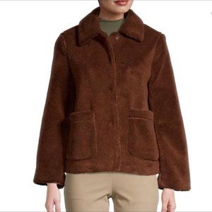 Plush and cozy, this teddy jacket adds rich texture to your outfit.